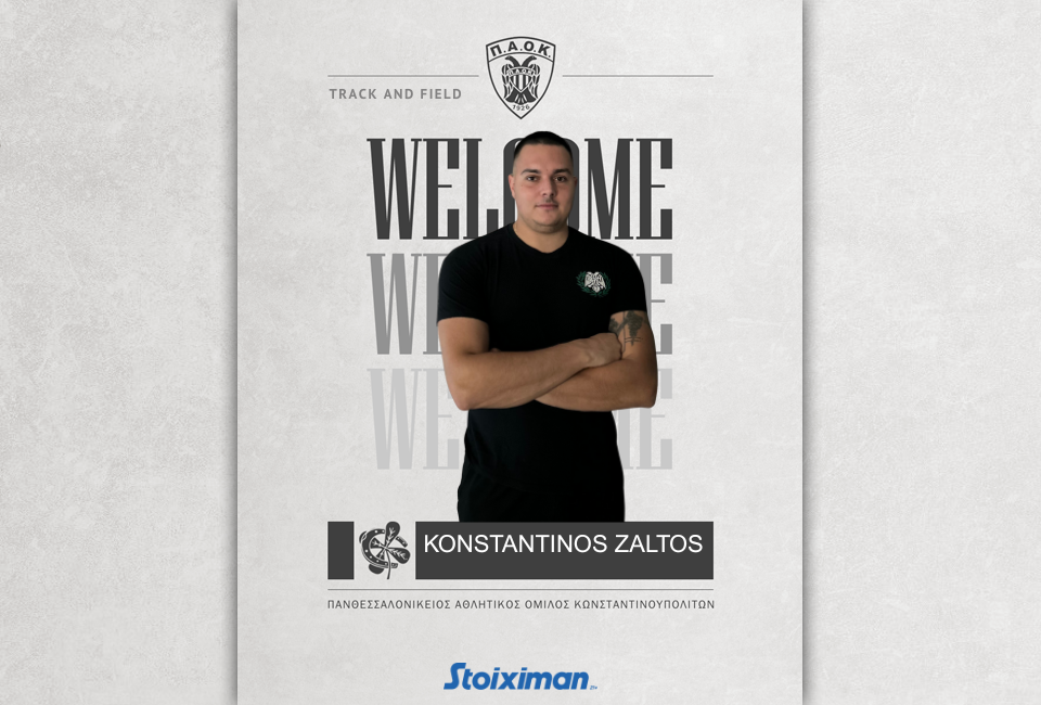 Ο ΠΑΟΚ, και το τμήμα Στίβου, ανακοινώνουν την έναρξη συνεργασίας με τον αθλητή, Κωνσταντίνο Ζάλτο. Γεννημένος το 2000, ο Κωνσταντίνος Ζάλτος αγωνίζεται στη σφυροβολία, έχει ύψος 191cm, και θα ενισχύσει