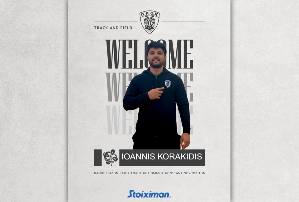 Ο ΠΑΟΚ, και το τμήμα Στίβου, ανακοινώνει την έναρξη συνεργασίας με τον αθλητή, Ιωάννη Κορακίδη. Γεννημένος το 2003, ο Ιωάννης Κορακίδης αγωνίζεται στην σφυροβολία. Ο Ιωάννης Κορακίδης αποτελεί έναν από