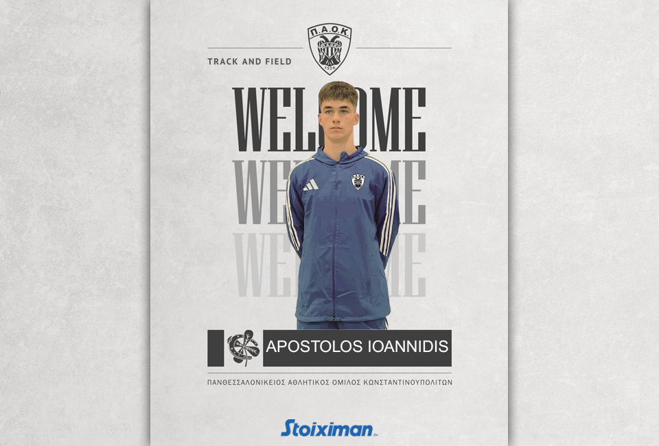 Ο ΠΑΟΚ, και το τμήμα Στίβου, ανακοινώνουν την έναρξη συνεργασίας με τον αθλητή, Απόστολο Ιωαννίδη. Ο 17χρονος σπρίντερ, ο οποίος προέρχεται από τον Βόλο, θεωρείται ένα από τα πιο σημαντικά