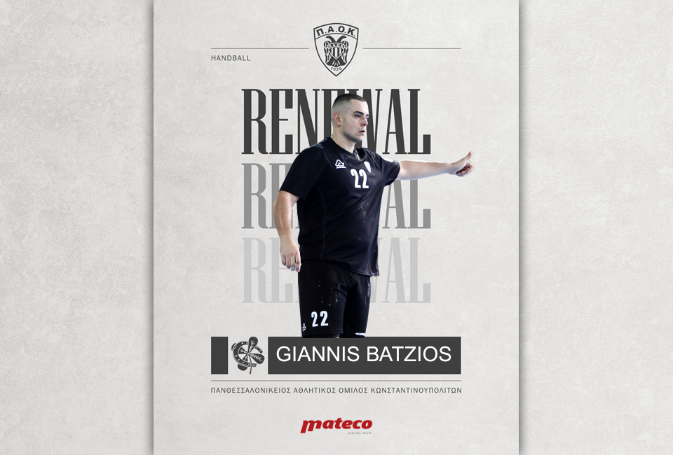 Ο ΠΑΟΚ, και το τμήμα Χάντμπολ ανδρών, ανακοινώνουν την ανανέωση συνεργασίας με τον αθλητή, Γιάννη Μπάτζιο, για την αγωνιστική περίοδο 2025-2026. Ο Έλληνας πίβοτ, γεννημένος το 1999 και με ύψος