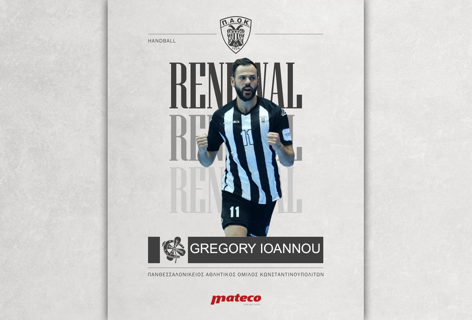 Ο ΠΑΟΚ. και το τμήμα Χάντμπολ ανδρών, ανακοινώνουν την ανανέωση συνεργασίας με τον αθλητή, Γρηγόρη Ιωάννου, για την αγωνιστική περίοδο 2025-2026. Ο Έλληνας διεθνής δεξιός εξτρέμ, γεννημένος το 1995 και