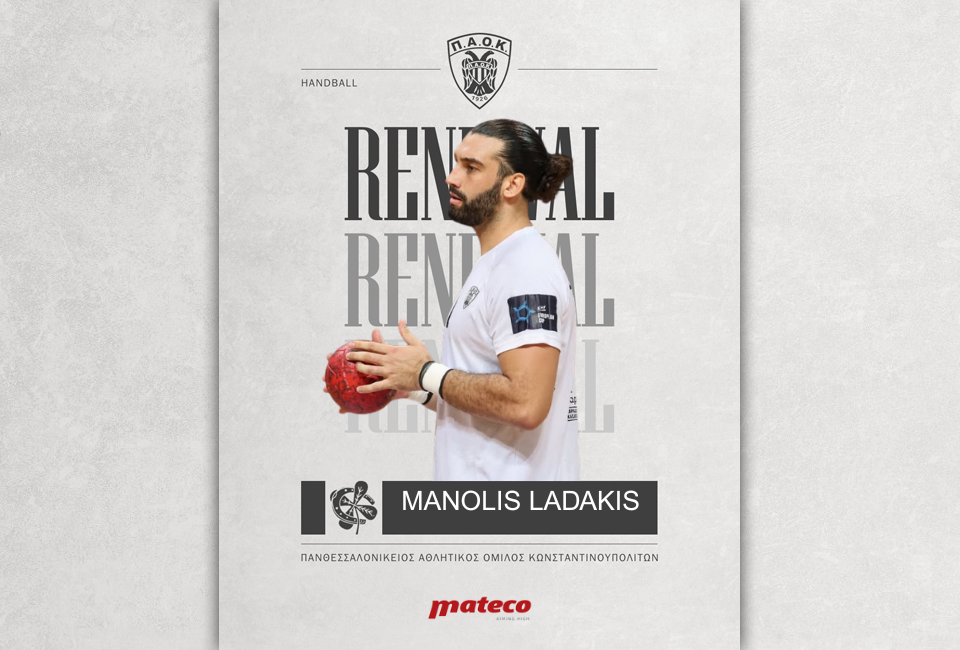 Ο ΠΑΟΚ, και το τμήμα Χάντμπολ ανδρών, ανακοινώνουν την ανανέωση συνεργασίας με τον αθλητή, Μανώλη Λαδάκη, για την αγωνιστική περίοδο 2025-2026. Ο Έλληνας ίντερ, γεννημένος το 1996 και με ύψος