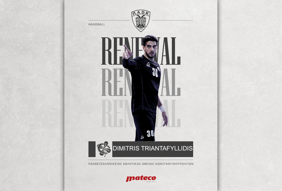 Ο ΠΑΟΚ και το τμήμα χάντμπολ ανδρών, ανακοινώνουν την ανανέωση συνεργασίας με τον αθλητή, Δημήτρη Τριανταφυλλίδη, για την αγωνιστική περίοδο 2025-2026. Ο Έλληνας διεθνής αριστερός ίντερ, γεννημένος το 1999 και