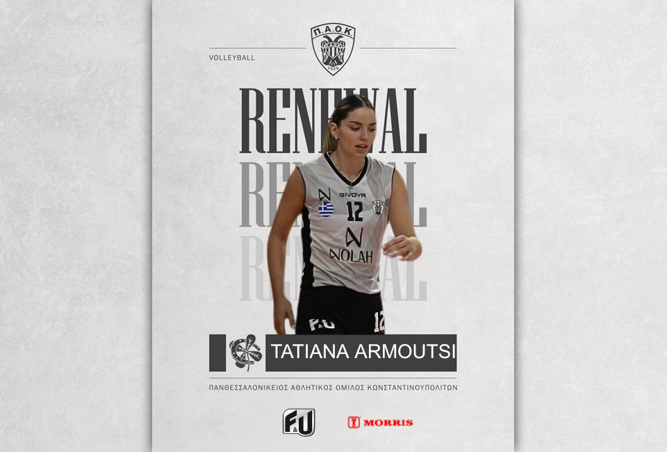 Ο ΠΑΟΚ, και το τμήμα Βόλεϊ γυναικών, ΠΑΟΚ F&U, ανακοινώνουν την ανανέωση συνεργασίας με την αθλήτρια, Τατιάνα Αρμουτσή, για την αγωνιστική περίοδο 2025-2026. Η Ελληνίδα κεντρικός, γεννημένη το 2003 και