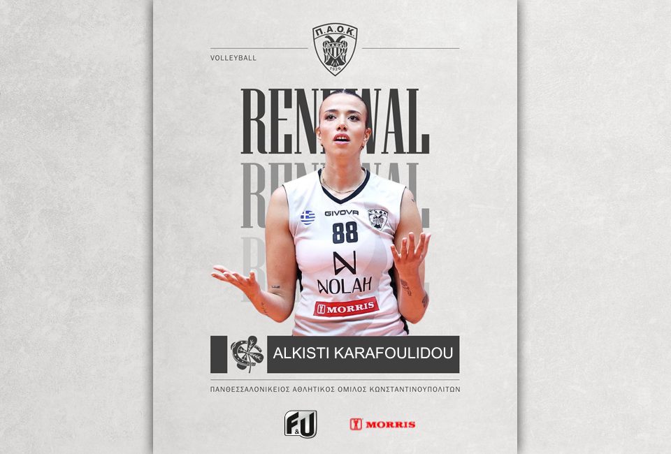 Ο ΠΑΟΚ, και το τμήμα Βόλεϊ γυναικών, ΠΑΟΚ F&U, ανακοινώνουν την ανανέωση συνεργασίας με την αθλήτρια, Άλκηστις Καραφουλίδου, για την αγωνιστική περίοδο 2025-2026. Η Ελληνίδα διαγώνιος, γεννημένη το 1999 και
