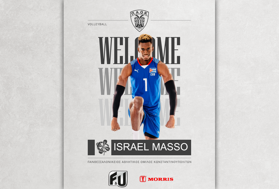Ο ΠΑΟΚ, και το τμήμα Βόλεϊ ανδρών, ανακοινώνουν την έναρξη συνεργασίας με τον αθλητή, Ισραέλ Μασό, για την αγωνιστική περίοδο 2025-2026. Γεννημένος στην Κούβα στις 02/12/1997, ο Ισραέλ Μασό αγωνίζεται