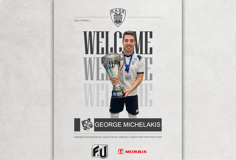 Ο ΠΑΟΚ, και το τμήμα Βόλεϊ ανδρών, ανακοινώνουν την έναρξη συνεργασίας με τον αθλητή, Γιώργο Μιχελάκη, για την αγωνιστική περίοδο 2025-2026. Γεννημένος στις 27/05/1997, ο Γιώργος Μιχελάκης αγωνίζεται ως λίμπερο