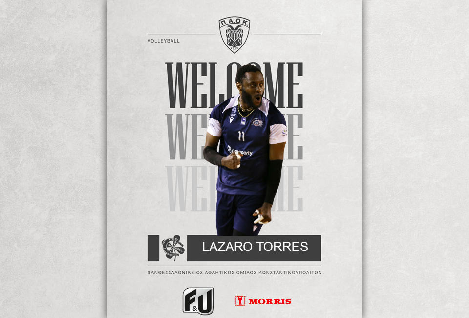 Ο ΠΑΟΚ, και το τμήμα Βόλεϊ ανδρών, ανακοινώνουν την έναρξη συνεργασίας με τον αθλητή, Λάζαρο Τόρες, για την αγωνιστική περίοδο 2025-2026. Γεννημένος στην Κούβα στις 11/09/1996, ο Λάζαρο Τόρες αγωνίζεται