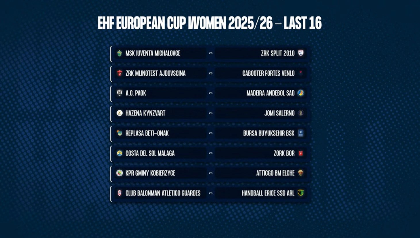 Πραγματοποιήθηκε στην Βιέννη, στα γραφεία της EHF, η κλήρωση της φάσης των «16» του EHF European Women’s Cup, με την συμμετοχή και του ΠΑΟΚ. Ο Δικέφαλος θα αντιμετωπίσει την Madeira